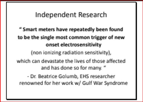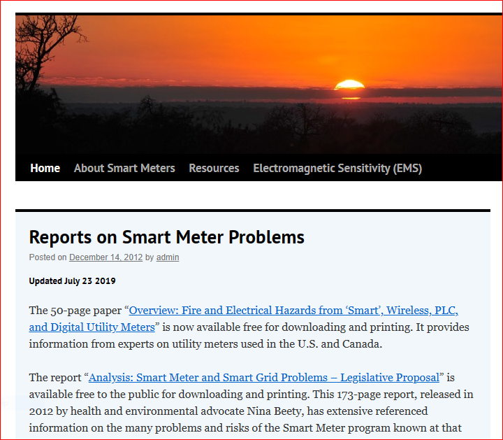 See also: The 50-page paper “Overview: Fire and Electrical Hazards from ‘Smart’, Wireless, PLC, and Digital Utility Meters” by Nina Beety, available free for downloading and printing. It provides information from experts on utility meters used in the U.S. and Canada.